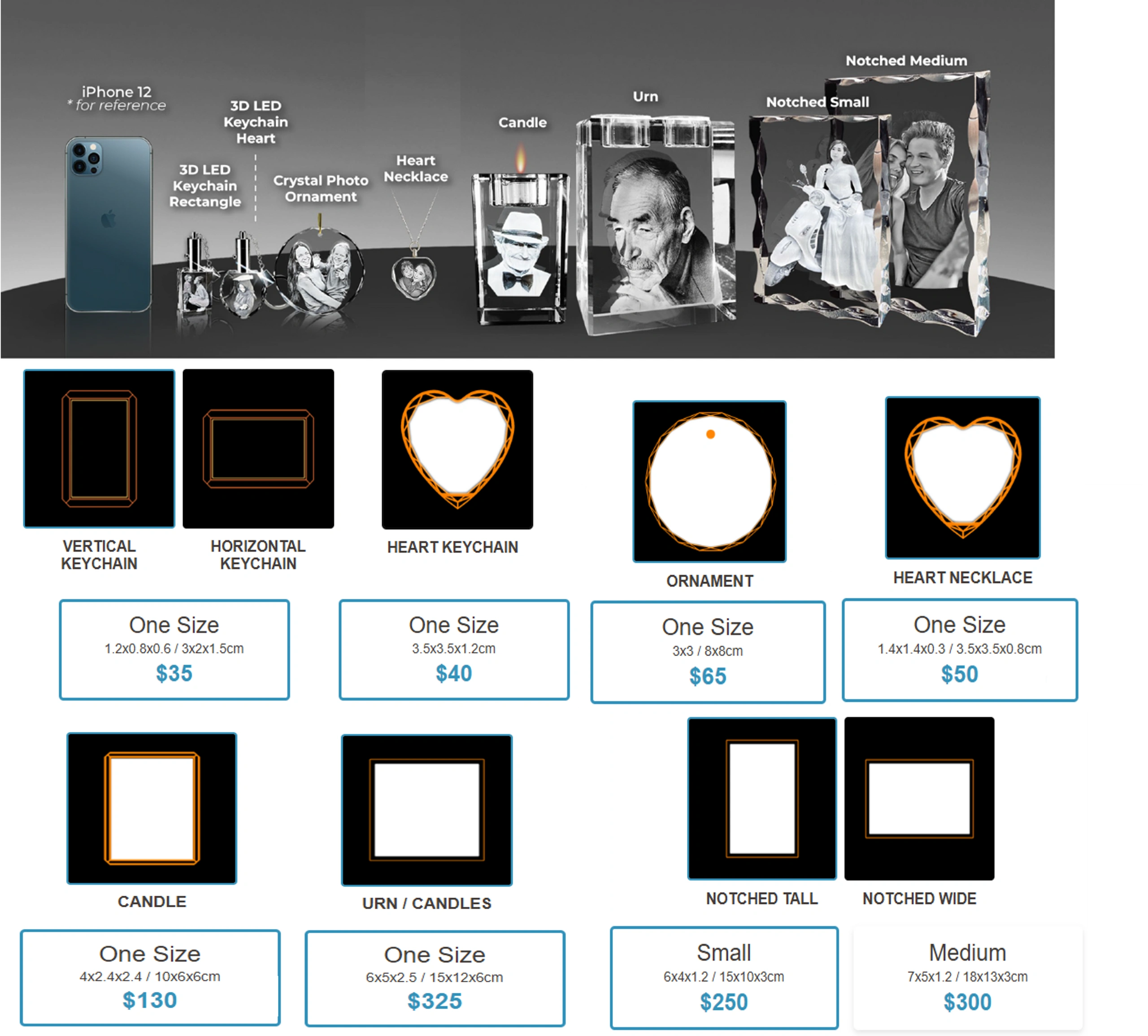 Using the latest laser technology and state-of-the-art proprietary software, we digitally enhance any photo or image into a 3D format that is ready to be sub-surface laser engraved into a crystal. Our secret sauce lies within the 3D conversion process from flat images into multidimensional models. The finished product is a tangible custom piece of personal art of superb quality with high levels of accuracy and resolution that will never fade, discolor, or deteriorate.